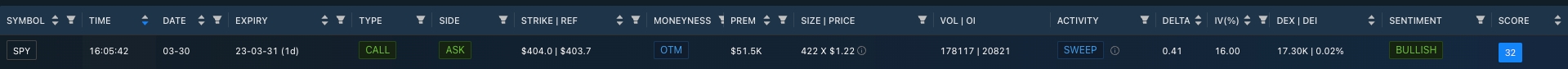 Delta exposure on-balance (or imbalance) shows whether the overall option flow is more bullish or bearish.